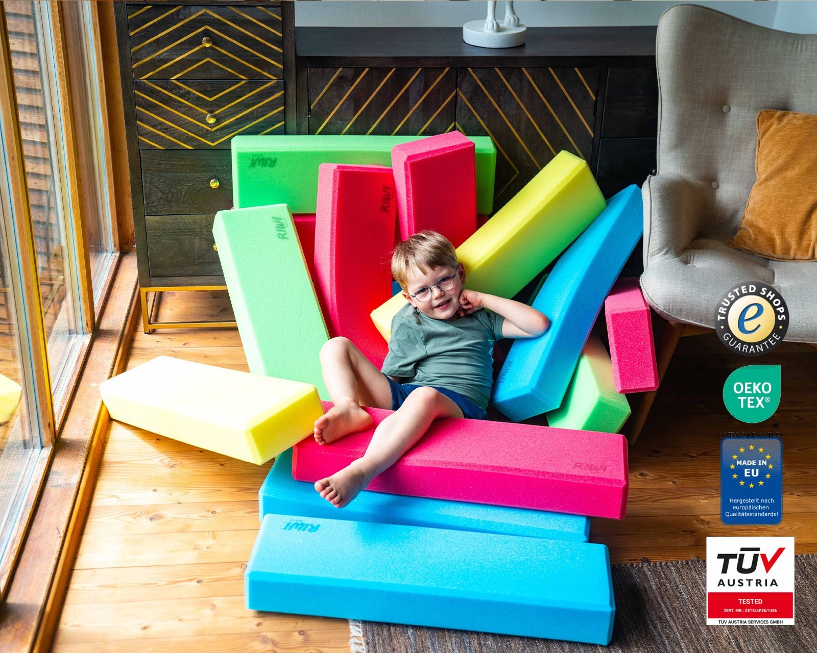 Perfect for professional use: Our velour and PU covers protect your RIWI® XXL set in everyday daycare life – during regular play, heavy use, and frequent washing. Durable, hygienic, and easy to change.