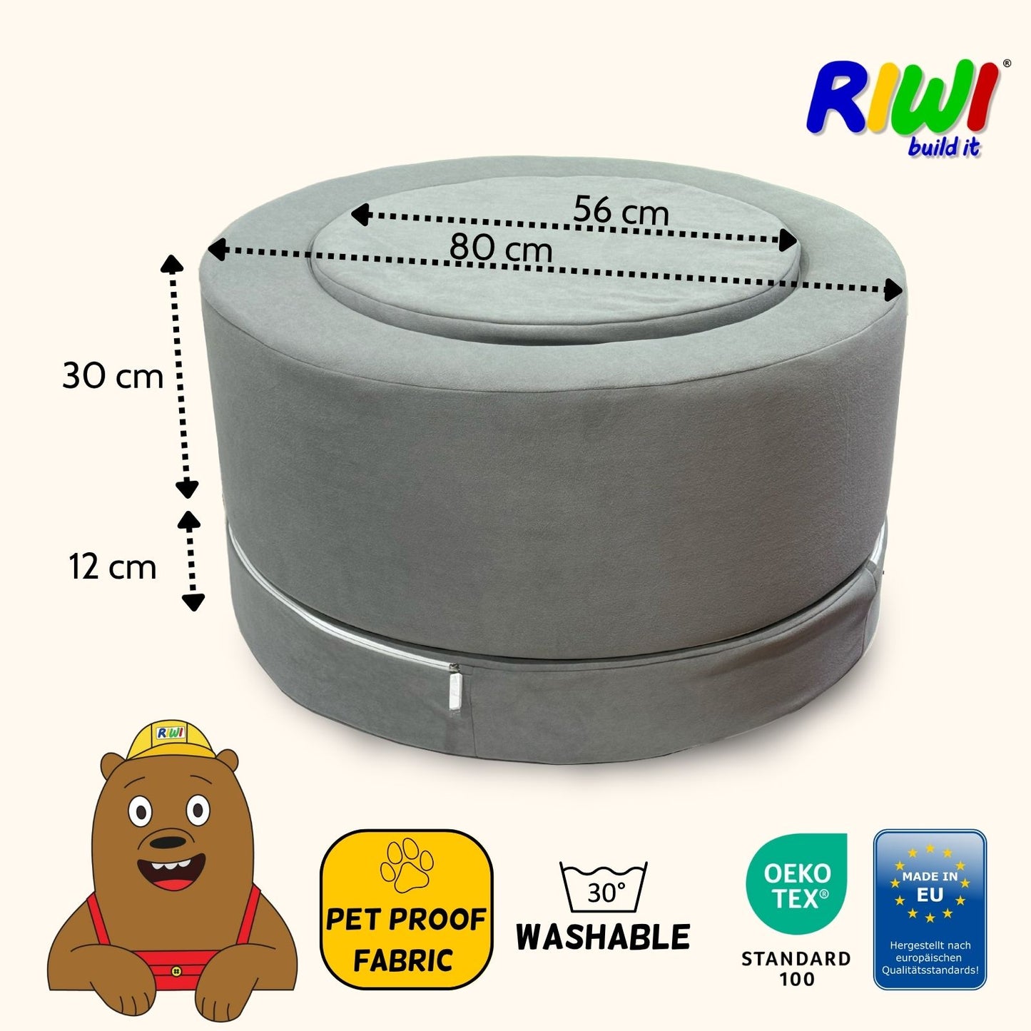 – 1x Colchón en forma de anillo (Ø exterior 80 cm / interior 56 cm, alto 30 cm)
