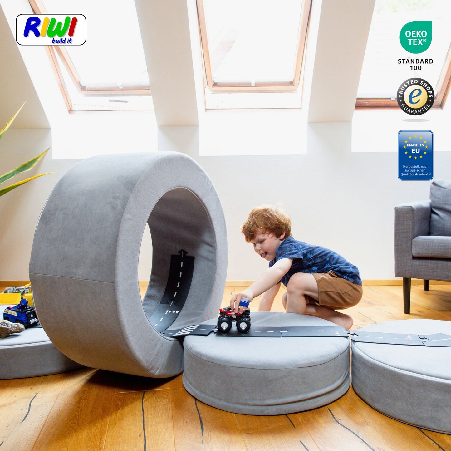 RIWI® Loop es sinónimo de calidad, seguridad y juego creativo – como asiento, bloque y juguete de movimiento. Modular, inteligente y perfecto para cualquier hogar.