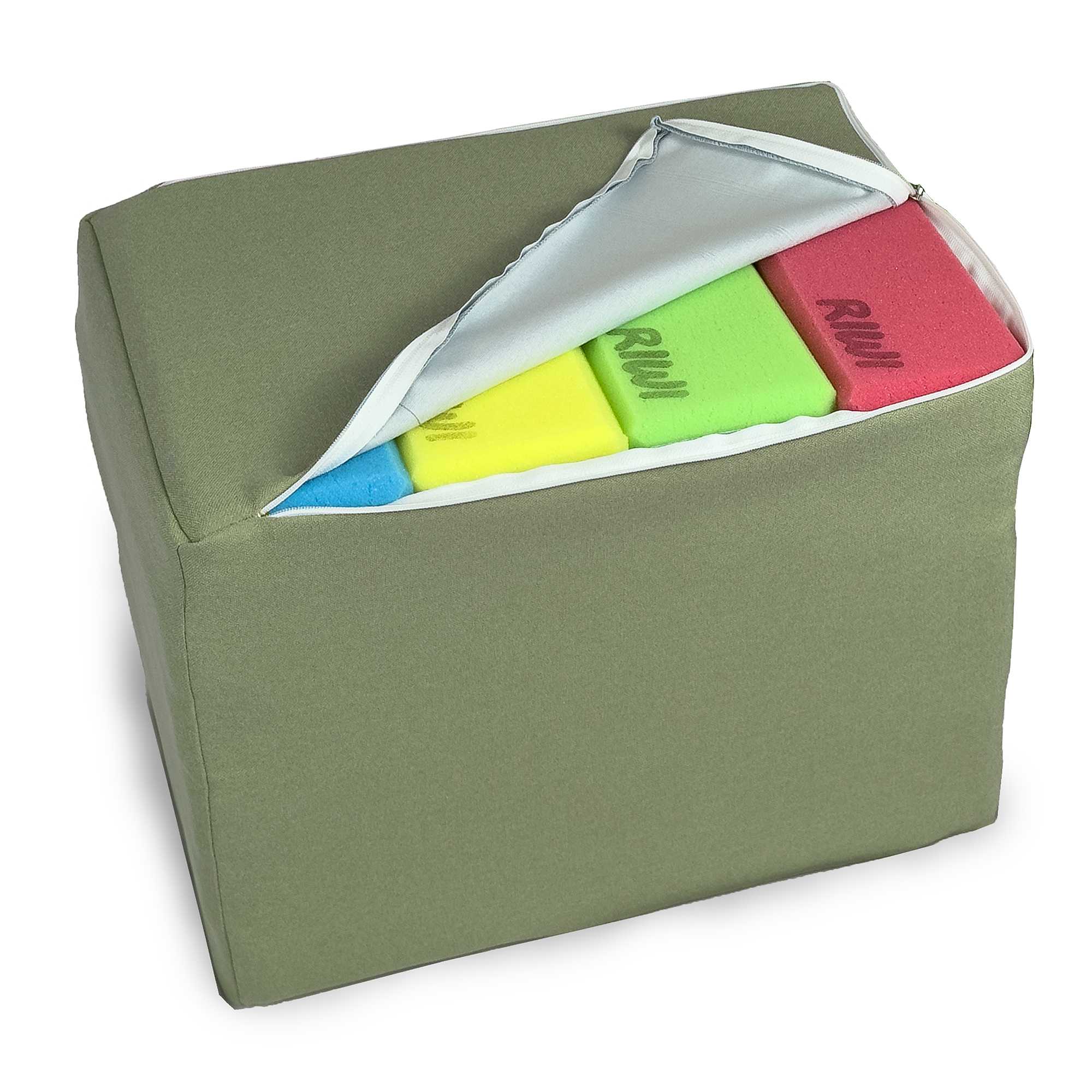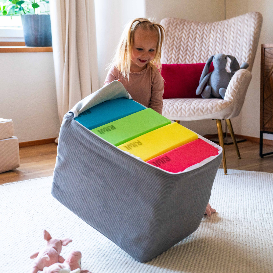 Con la bolsa RIWI® mini, transformas tu set de 24 bloques en un práctico y divertido taburete RIWI®.