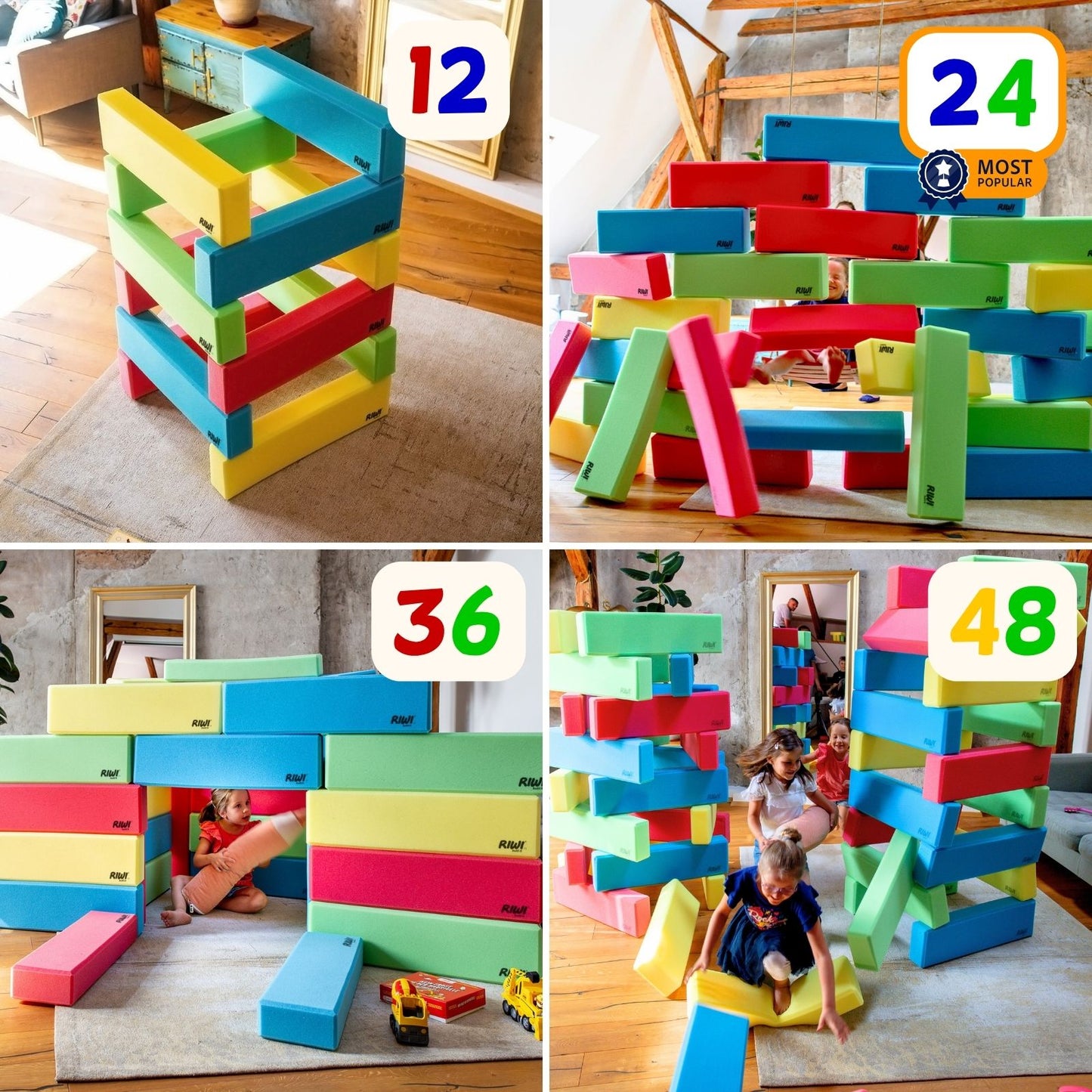 👨👩👧👦 Set de 24 blocs : best-seller pour 1–2 enfants