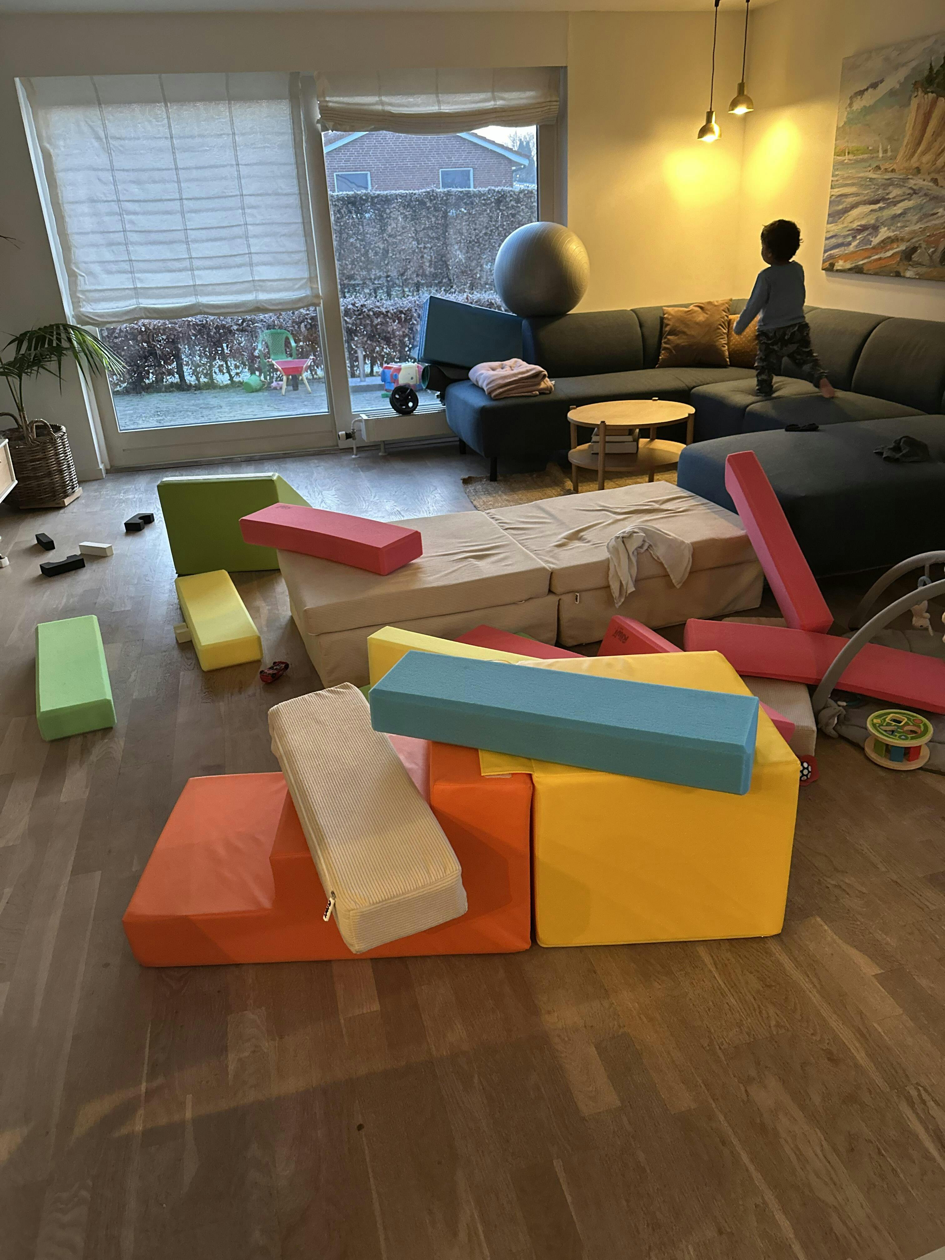 Nos encanta!! Tiene infinitas posibilidades para jugar inventar crear y disfrutar!! Y ahora lo hemos transformado en sofá para también poder descansar y hacer acrobacias!! Estamos muy contentos!!Porque es súper versátil y a los peques les encanta!!